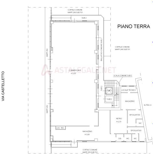 PIENA PROPRIETA'. NEGOZIO della superficie commerciale di mq. 476, posto al piano terra, composto da ampio locale commerciale, magazzino, retro, spogliatoio e servizi igienici personale.
