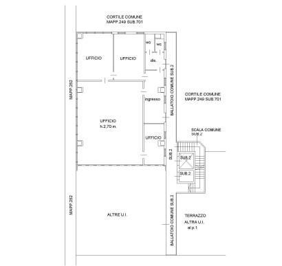 PIENA PROPRIETA' UFFICIO della superficie commerciale di mq. 216, posto al piano secondo, composto da ingresso, quattro locali uffici, due bagni. Dotato di ascensore e riscaldamento