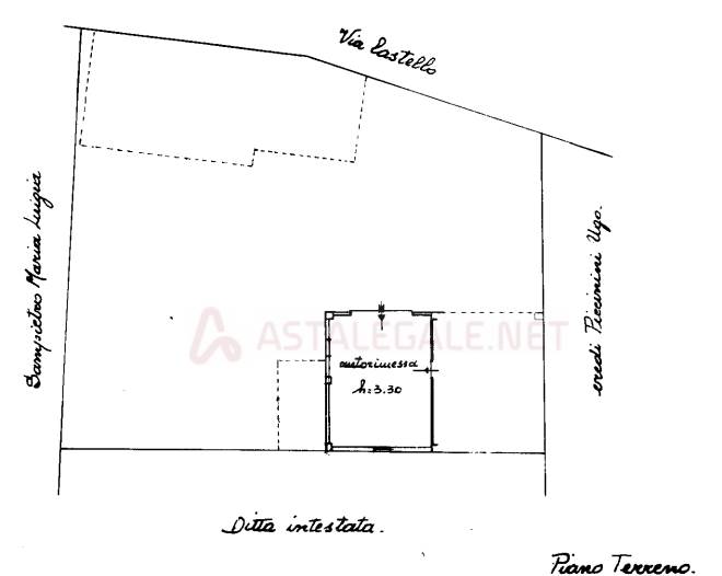 abitazione disposta su due piani fuori terra e uno interrato, tra loro comunicanti a mezzo di scala interna, della superficie lorda complessiva mq. 143,14, composta da locale cantina (superficie mq. 26,18) al piano seminterrato, da ingresso diretto nel soggiorno con angolo cottura, servizio in fase di completamento, disimpegno, vano scala ed un locale di sgombero al piano terra, da camera, bagno, balcone, disimpegno e locale di sgombero al piano primo, oltre a dei rustici in corpo staccato, in precarie condizioni strutturali, adibiti a pollaio, una cantina a piano terreno con sovrastante legnaia al piano primo e box per auto al piano terreno, con circostante piccola porzione di sedime pertinenziale adibita a cortile e adiacenti tre appezzamenti di terreno.