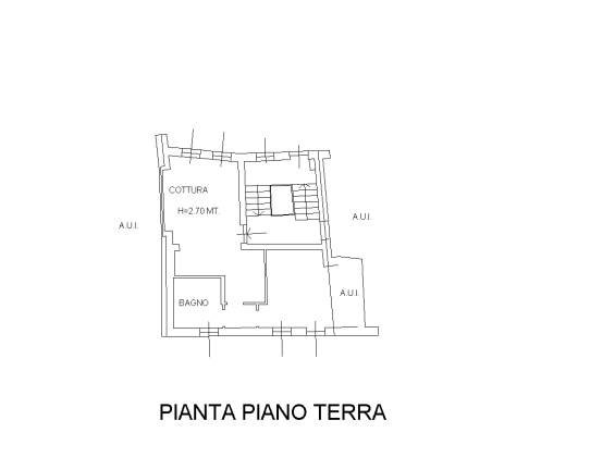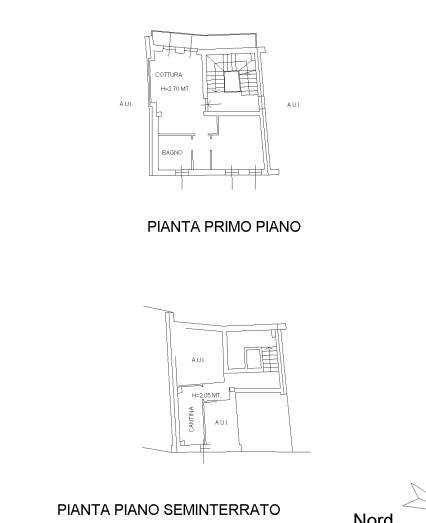 - appartamento al piano primo: costituito da soggiorno/cucina, disimpegno, bagno e camera; con cantina al piano interrato;