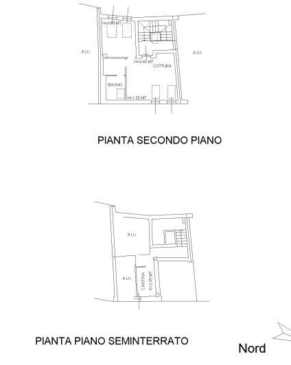 - appartamento/mansarda al piano secondo: costituito da soggiorno/cucina, disimpegno, bagno e camera; con cantina al piano interrato;