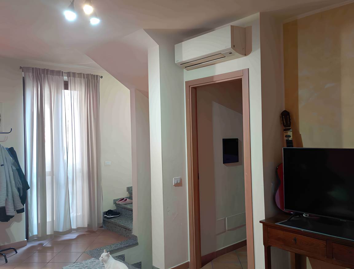 appartamento con accesso indipendente dal cortiletto privato (ad uso posto auto), disposto su tre livelli, al piano terra ingresso, al piano primo soggiorno, cucina e bagno al piano secondo camera da letto e bagno