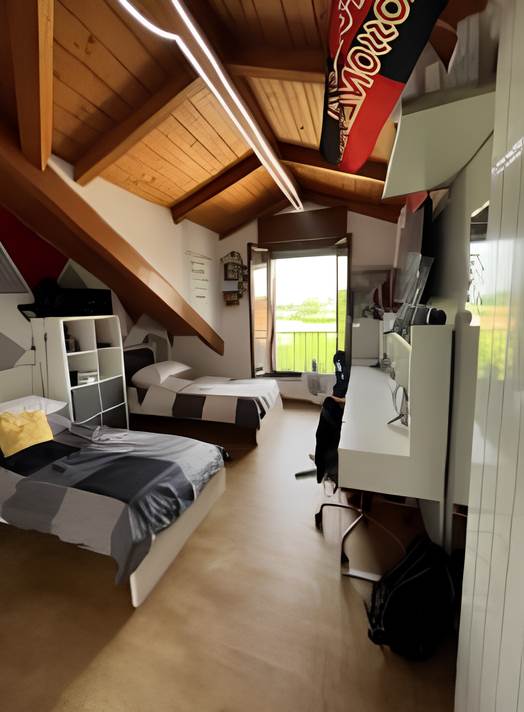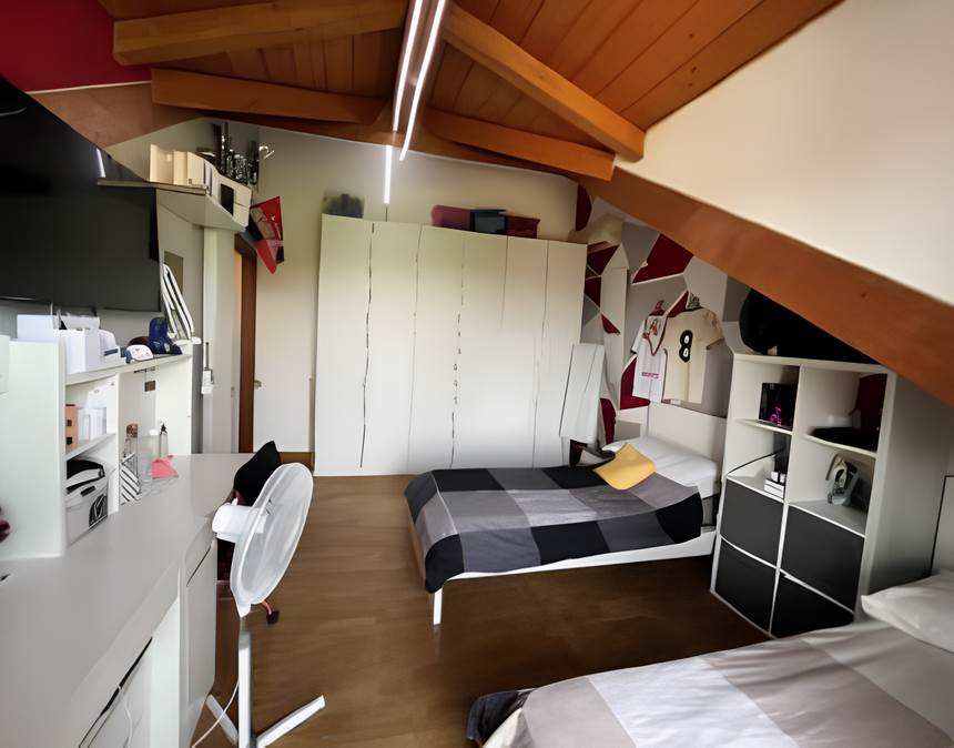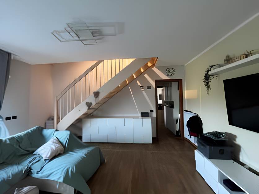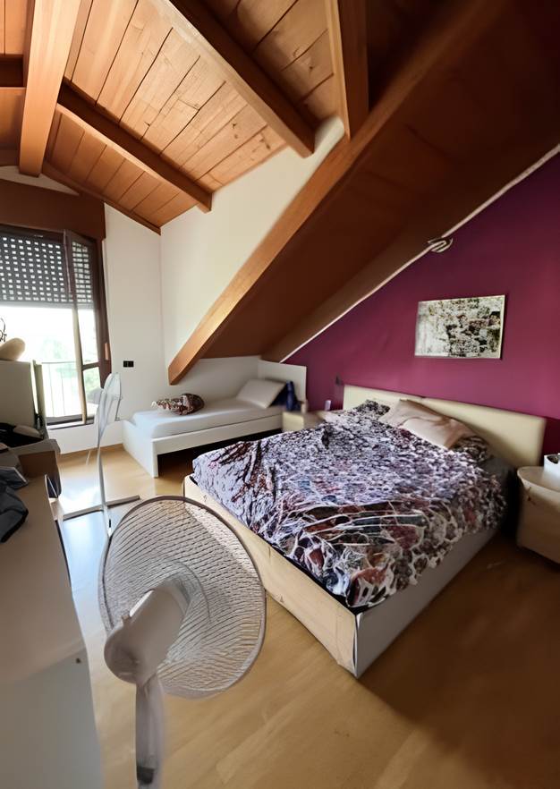 piena proprietà di appartamento ad uso abitazione posto al piano 2-3 composto da ingresso/soggiorno, bagno, disimpegno, cucina, scala di collegamento al piano terzo con destinazione d’uso soffitta, ma così distribuito, vano letto, bagno ed altro vano letto, oltre box al piano terra, della superficie commerciale di 81 mq