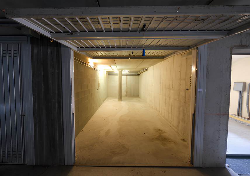 liscate (mi) via mozart 26, piena proprietà, garage all'asta posto al piano primo interrato, della superficie commerciale di 22 mq, dotato di saracinesca manuale e basculante