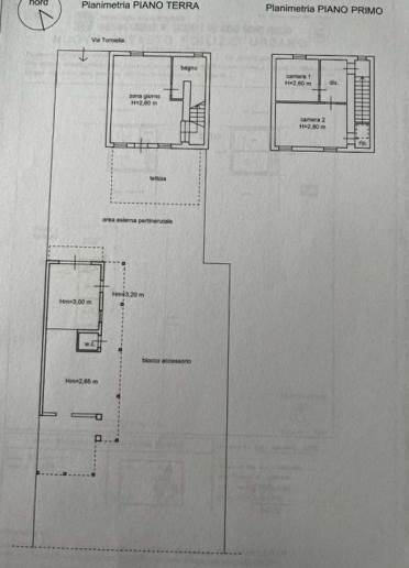 abitazione su due livelli fuori terra con blocco accessorio esterno ed area esterna esclusiva di pertinenza. l’abitazione è composta da un locale, cucina, disimpegno, corridoio e bagno al piano terra, due locali e corridoio al piano primo con annessi rustici e box al piano terreno, oltre a cortile.
