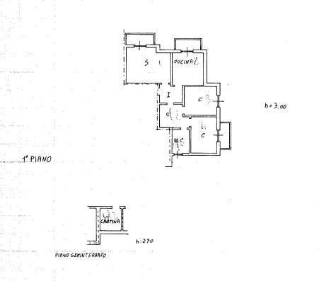 piena proprietà, appartamento sito al piano primo, composto da tre locali con servizi, cantina e vano autorimessa sito al piano terra e per la quota di 1/4 (un quarto) del diritto di piena proprieta’ terreno di stretta pertinenza.