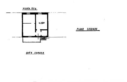 unità immobiliare ad uso abitativo sita al piano secondo con accesso da scala comune e successivo ballatoio comune con altra unità al piano primo su cui è ubicata la scala di accesso al secondo piano, composto da due locali con servizi, attualmente privo di serramenti. Della superficie commerciale di 51 mq