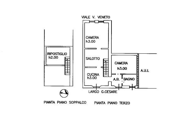 appartamento posto al piano terzo composto da tre locali, cucina, bagno e antibagno, scala di accesso ad un locale al piano soppalco ad uso ripostiglio. Della superficie commerciale di 85 mq