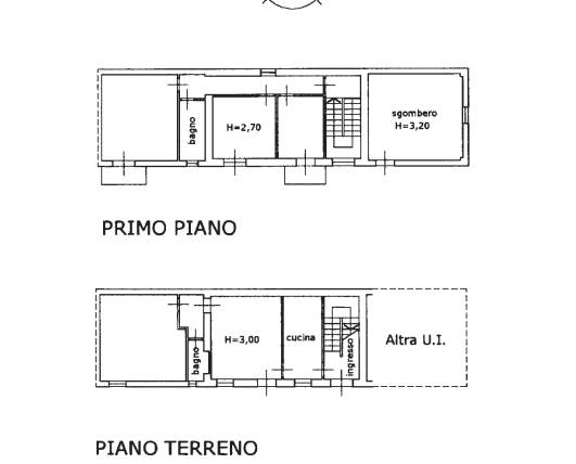 l’abitazione è composta al piano terra da locale giorno con sala da pranzo e cucina, camera da letto e bagno. al piano primo si trovano tre camere da letto e un bagno. al piano ammezzato è presente un locale sgombero accessibile dal vano scala