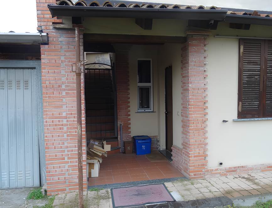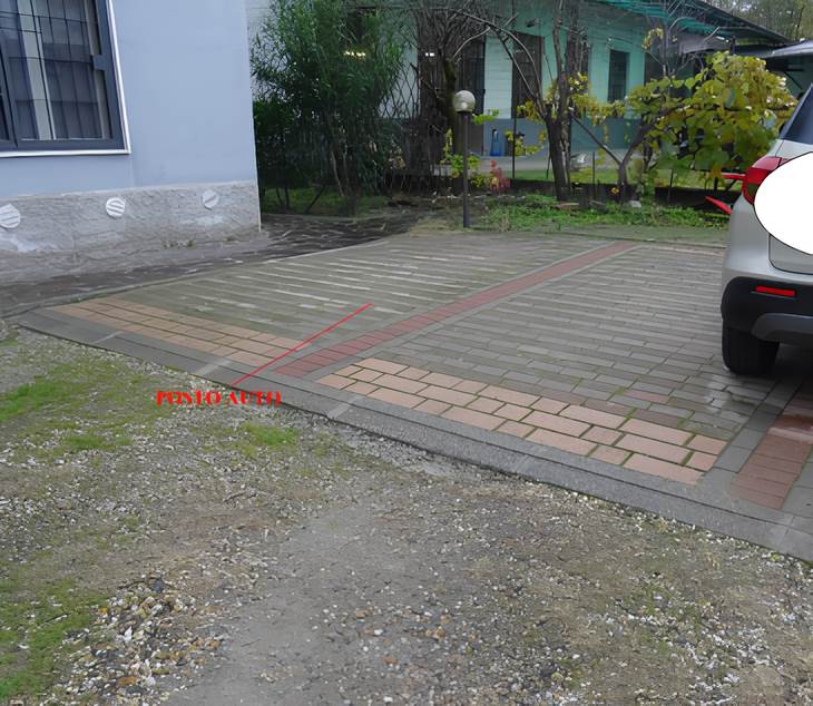 unità immobiliare abitativa sita al piano terra dell’edificio, in cui sono presenti un soggiorno/cucina, un bagno, due camere da letto, un ripostiglio, un disimpegno, posto auto scoperto, piccola area a cortile di pertinenza, non edificata soggetta a servitù di passaggi