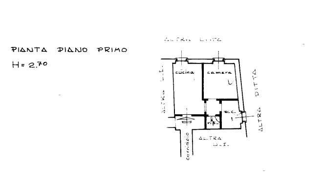 appartamento ad uso abitazione, posto al primo piano di un fabbricato a prevalente destinazione residenziale, avente accesso da vano scala comune con ingresso dalla via prati al civico n. 5, composto da cucina, disimpegno, camera ed un bagno