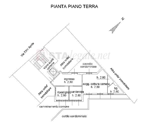 monolocale della superficie commerciale di mq. 82, posto al piano terra, vano soggiorno/cottura e notte, antibagno e bagno, ingresso, ripostiglio e guardaroba oltre autorimessa (doppia)