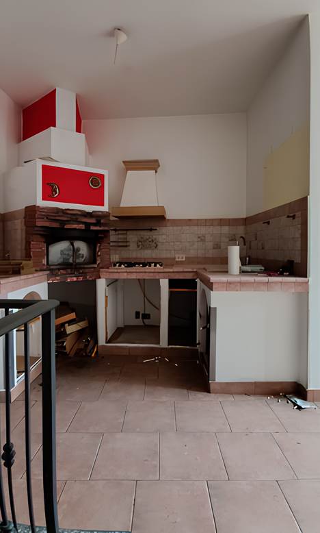 complesso immobiliare composta da un’unità immobiliare residenziale con affaccio unico ad ovest, ai piani terra, primo e secondo in una porzione terra-cielo di una palazzina residenziale di tre piani fuori terra. Il piano terra ha ingresso dalla corte comune; una porzione accessoria al piano secondo è accessibile direttamente tramite scala esterna coperta comune. Internamente la proprietà consiste in una unità immobiliare residenziale, che così si compone: piano terra: ingresso, un vano, bagno e ripostiglio in vano a parte, scala al piano superiore; piano primo: scala, un vano con angolo cottura, bagno, balcone; piano secondo: scala e vano sottotetto; nella porzione a parte con accesso dalla scala esterna altro grande vano unico;