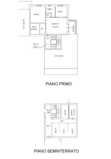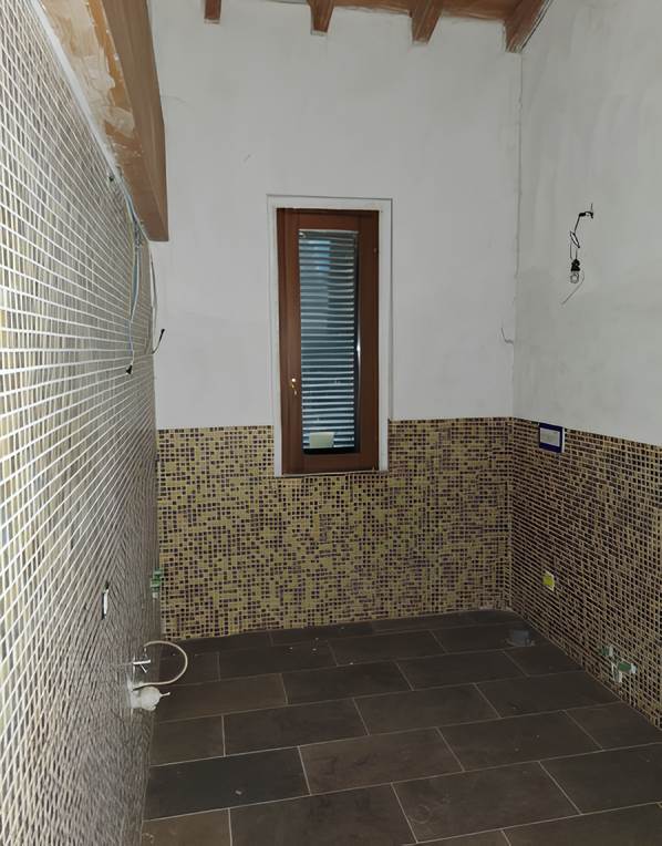 Immobile ad uso abitazione non ultimato sito in contesto condominiale di recente ristrutturazione. L’abitazione in oggetto, posta al piano primo, risulta così composta: Soggiorno con cucina a vista, una camera da letto, bagno, disimpegno notte ed un balcone sul fronte Ovest. Si rileva che è stato ricavato, all’interno dell’abitazione, un soppalco (ad oggi non accessibile) che, solo in parte, sovrasta l’abitazione in oggetto. Al piano terra la cantina.