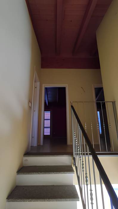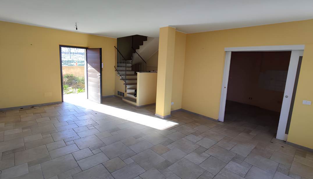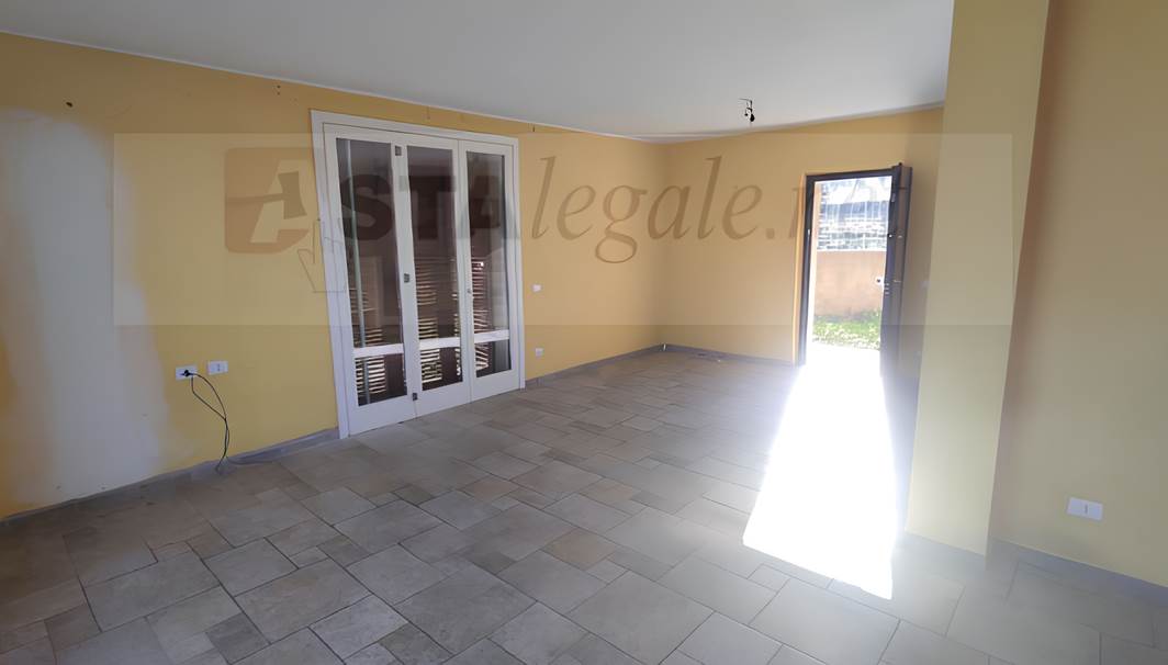 a) piena proprietà di villetta unifamiliare sviluppantesi su due piani fuori terra (p.t. e i°), composta al piano terra da ampio locale di ingresso adibito a soggiorno-pranzo, cucina, corridoio, bagno e scala di accesso ai piani primo e seminterrato, oltre a balcone affacciantesi sul sottostante cortile e porti-co; al piano primo disimpegno, tre camere da letto, bagno e balcone. completa l’unità abitativa area esterna a giardino, recintata