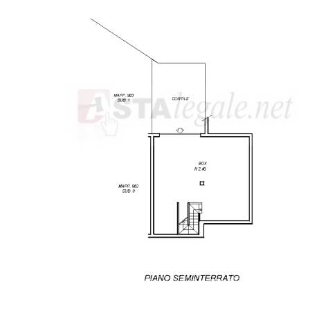 b) piena proprietà di autorimessa con annessi accessori e cortile posta in piano interrato (p.s1) costituita da un unico locale, con accesso esterno dal cortile esclusivo recintato e dal quale si accede tra-mite un breve corridoio ad un locale taverna, una lavanderia e il vano scala di collegamento all’unità abitativa posta al piano terra