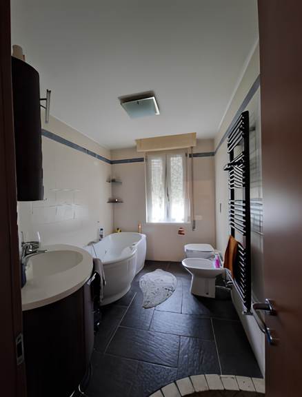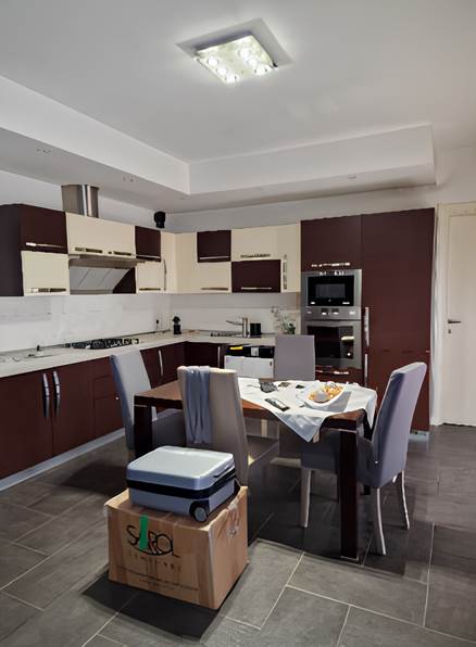 appartamento composto da un'ampia zona giorno - soggiorno, pranzo e cucina a vista - con un servizio con antibagno e di una zona notte composta da due camere ed un bagno, servite da due balconi.