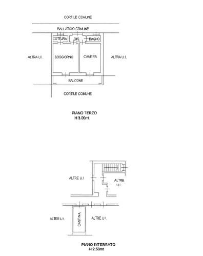 appartamento ad uso abitativo posto al piano terzo di edificio condominiale, avente accesso dalla scala B con annesso accessorio di cantina a piano interrato. L'appartamento, cui si accede da ballatoio comune, è composto da piccolo vano di ingresso, locale soggiorno/pranzo con annessa piccola zona cottura, camera da letto, servizio igienico, balcone esclusivo lungo il fronte dei due vani principali. Superficie commerciale mq 45,00