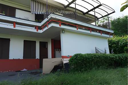 piena proprietà per la quota di 1000/1000 di villa bifamiliare da ristrutturare con appartamento di grandi dimensioni al piano rialzato, cantina, appartamento piccolo e autorimessa al piano seminterrato e relativo giardino